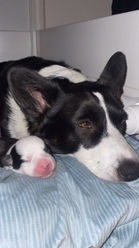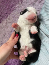 Kuldet bestod af 3 hanner og 1 tæve - alle sort/hvid/brindlepointed. Desværre mistede vi 3 hvalpe under fødslen/kejsersnittet og vi fik derfor kun én levende hvalp med hjem.